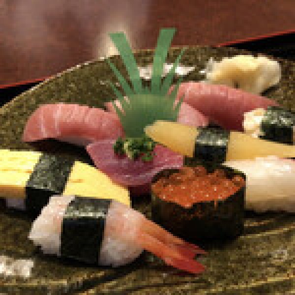 大とろ、中とろ2貫、鰹、カズノコ、いくら、甘エビ、鯛、つぶ貝、玉子の10貫で構成。